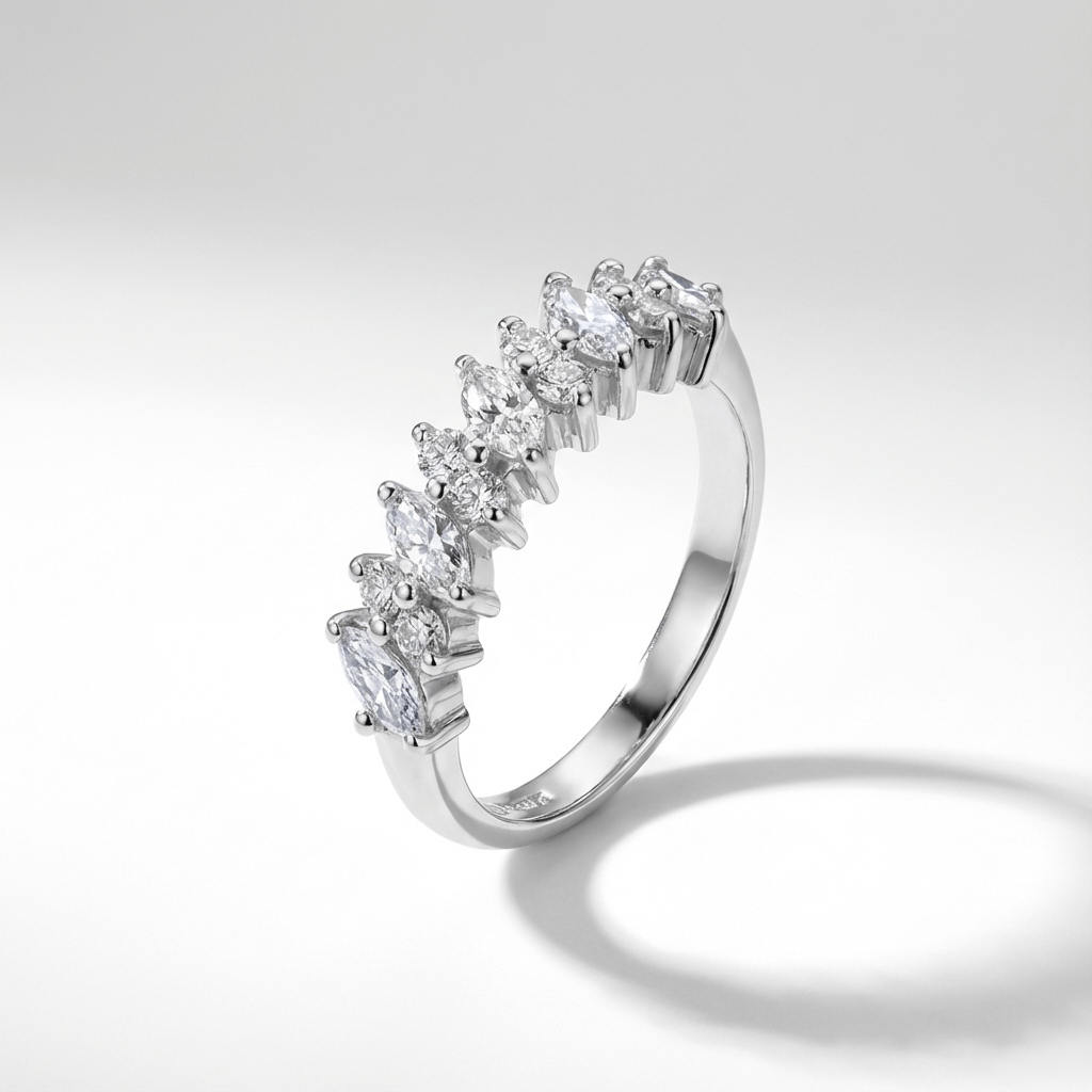 Unit price perDiamonds run along the front half of the band in a shared prong setting, offering a refined touch of sparkle that complements other rings without overpowering them.