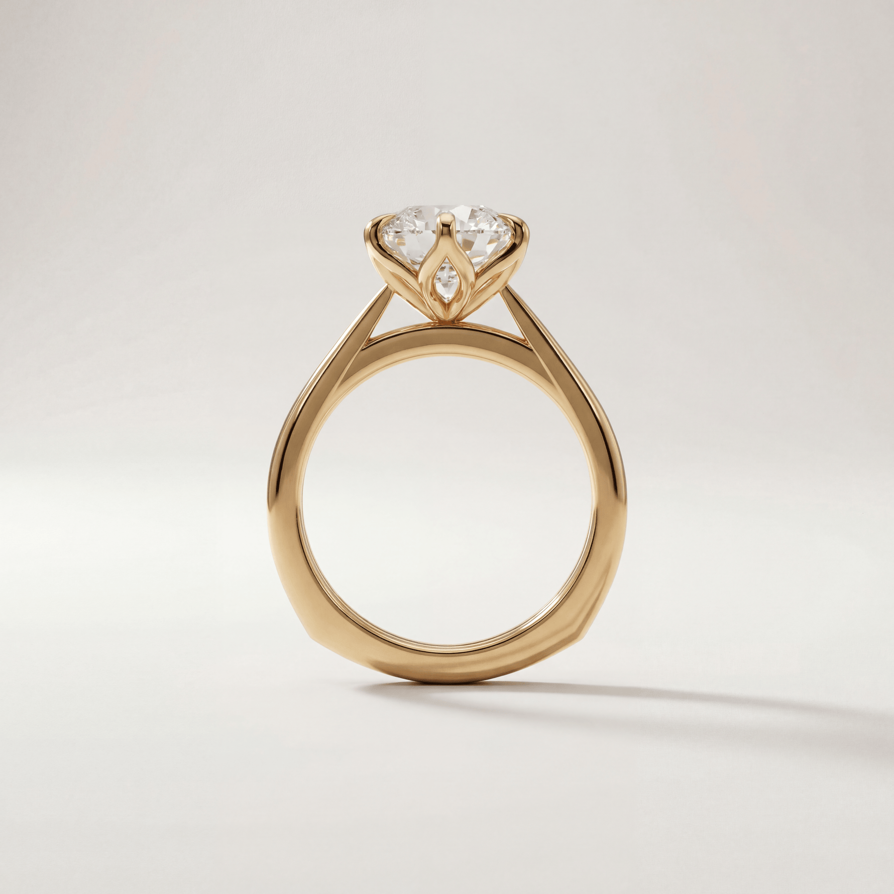 Round tulip. Six-petal tulip design feels floral and delicate. Euroshank keeps the ring comfortable and secure.