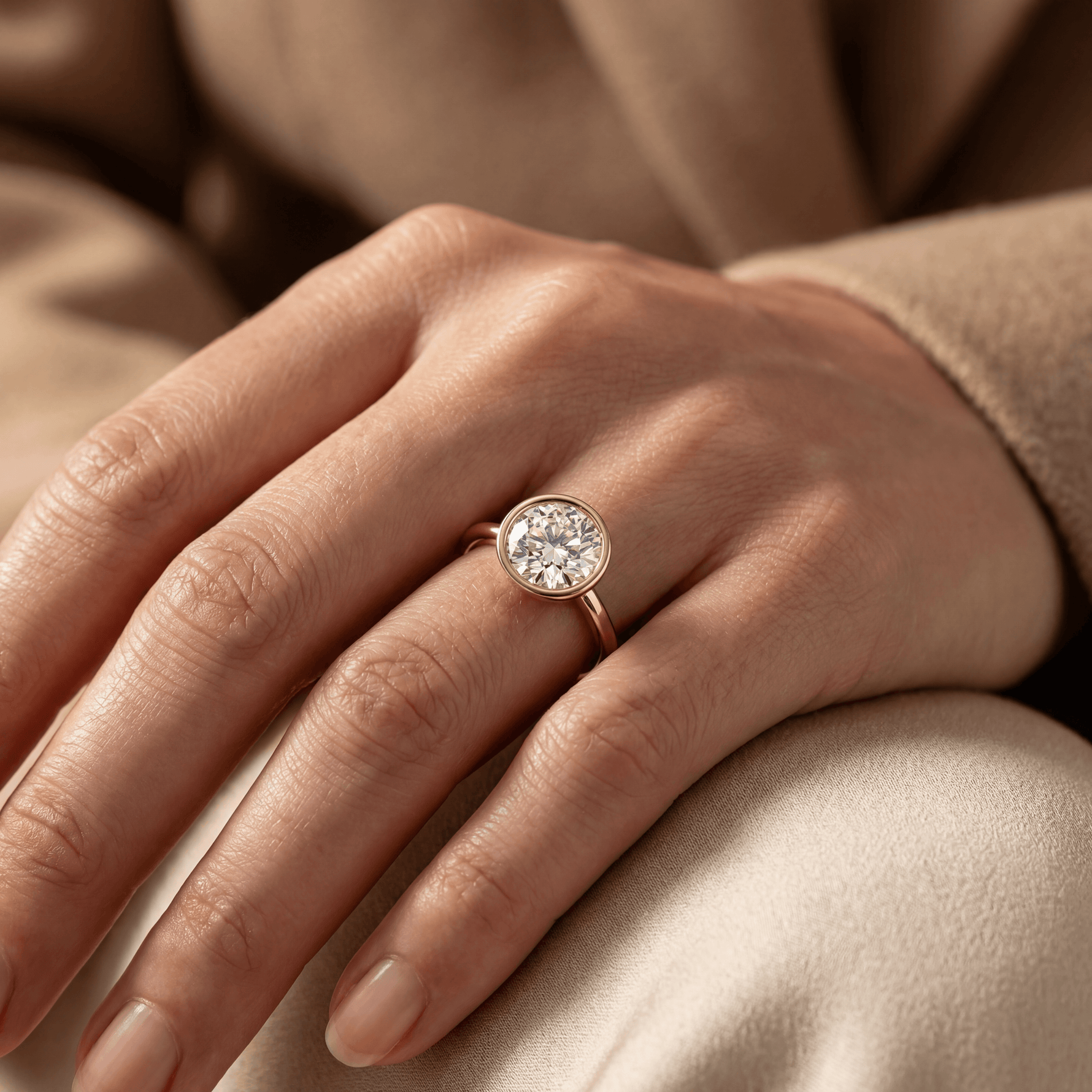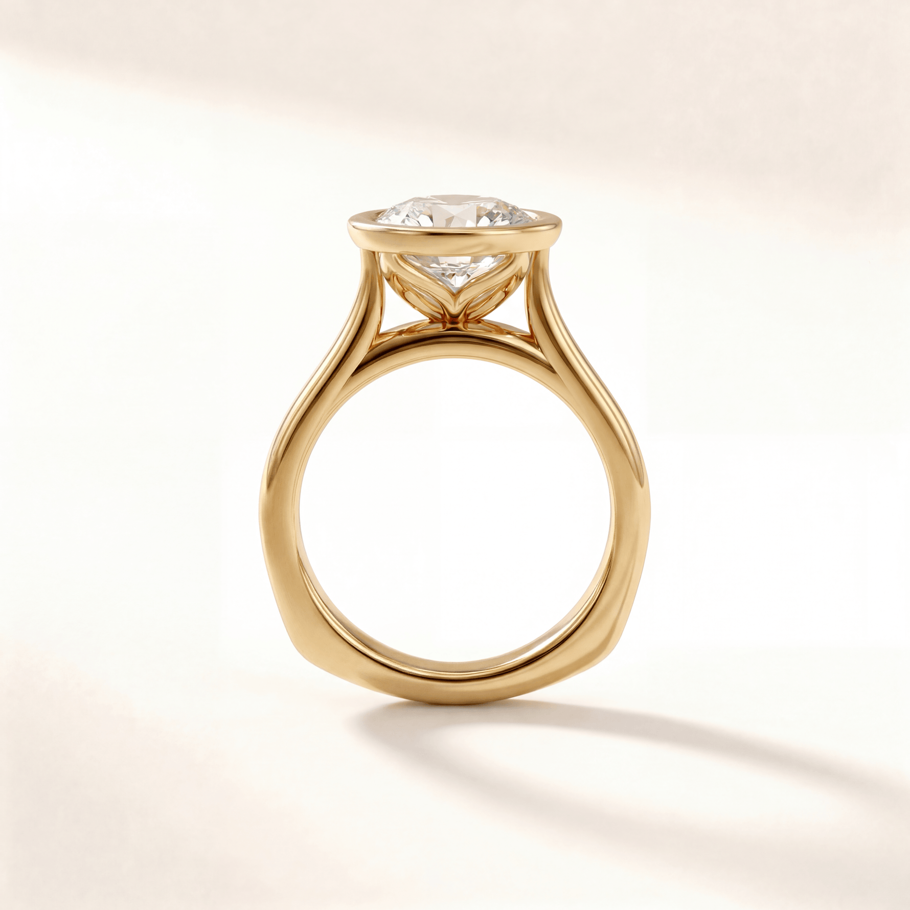 Round tulip full bezel. Full bezel secures the six petals. Design feels clean and elegant without being fussy.