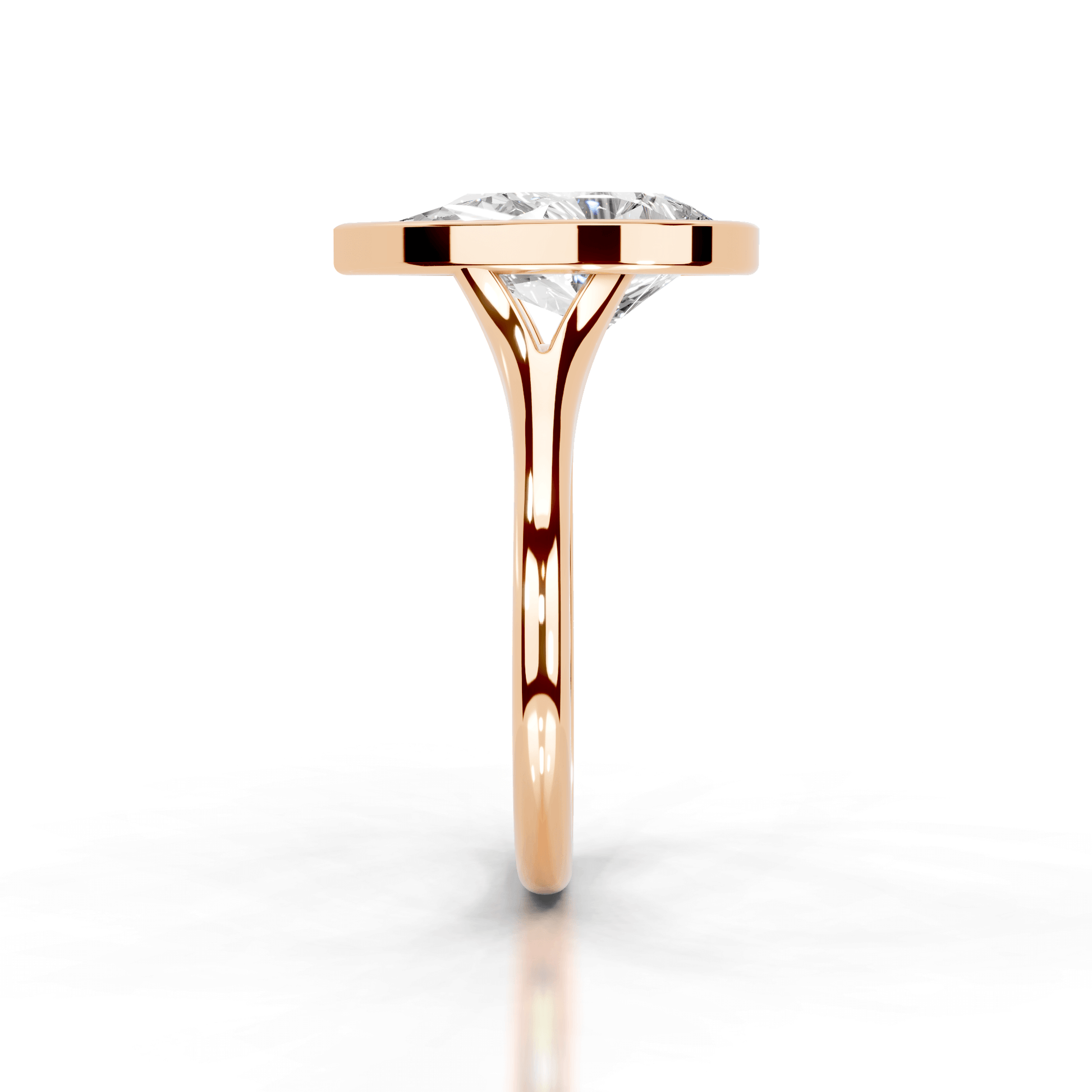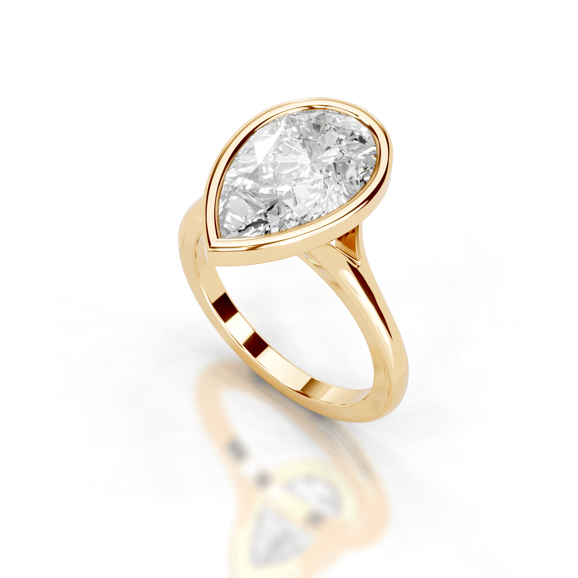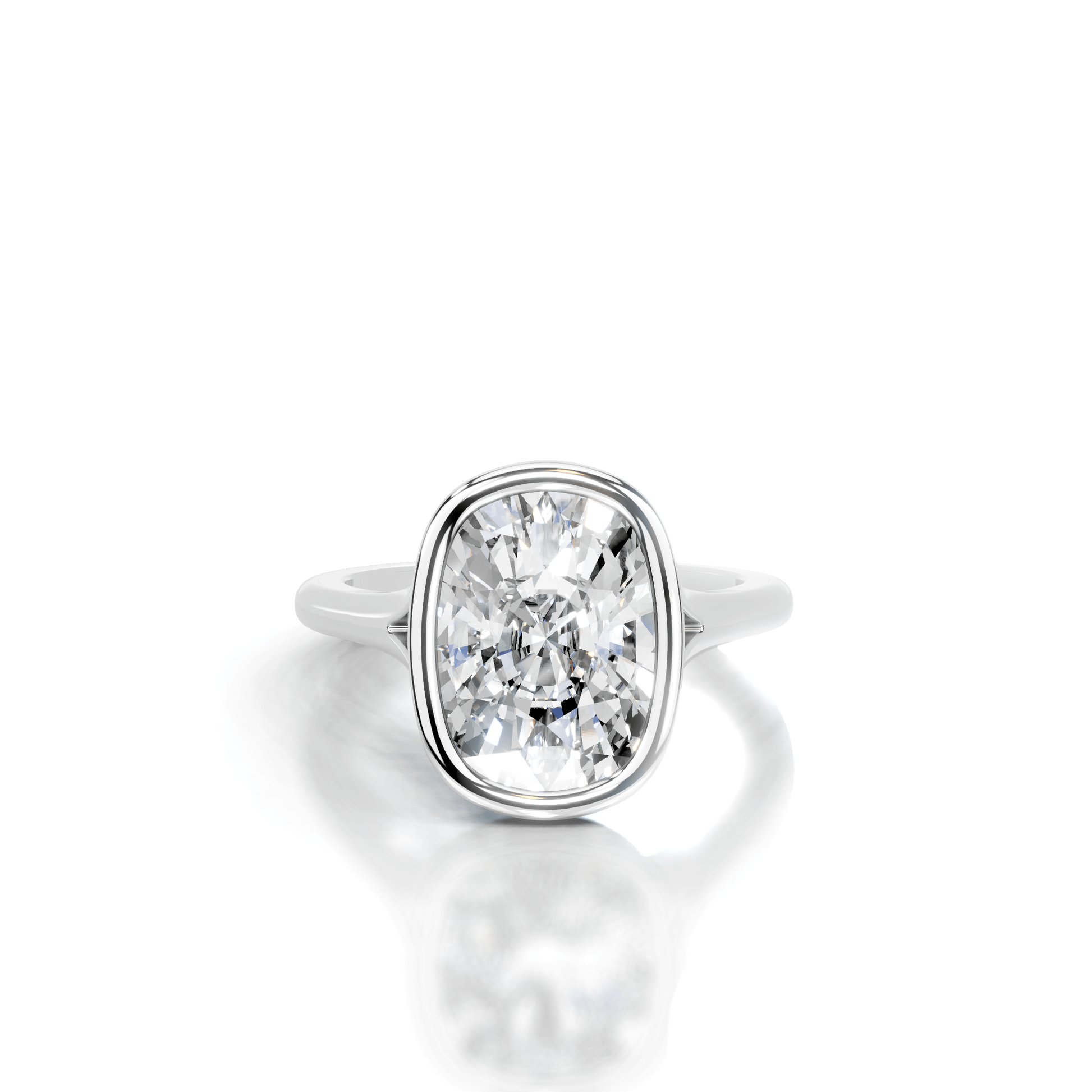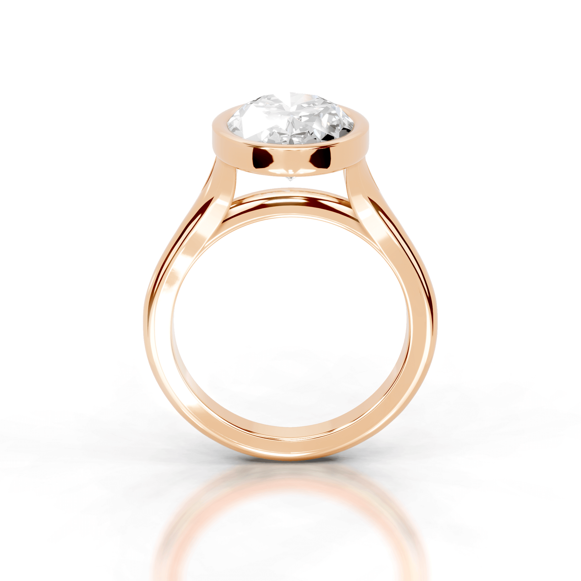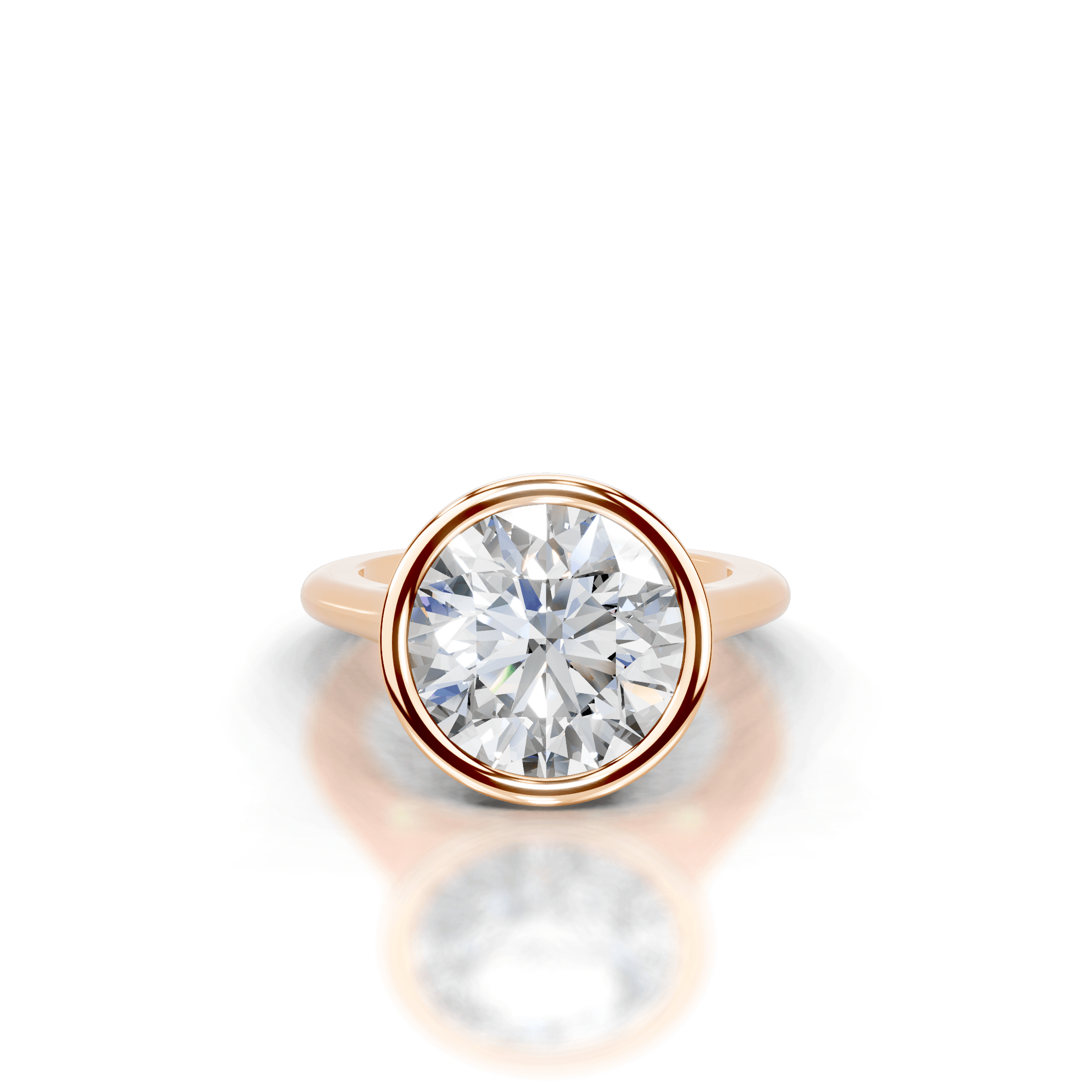 The split shank frames the diamond in an invisible full bezel setting, giving it a modern yet structured look. The 2 mm band is light and comfortable. The ring is a mid-profile setting that lets the diamond sit just above the band for a wedding band to stack flush for a clean pairing.