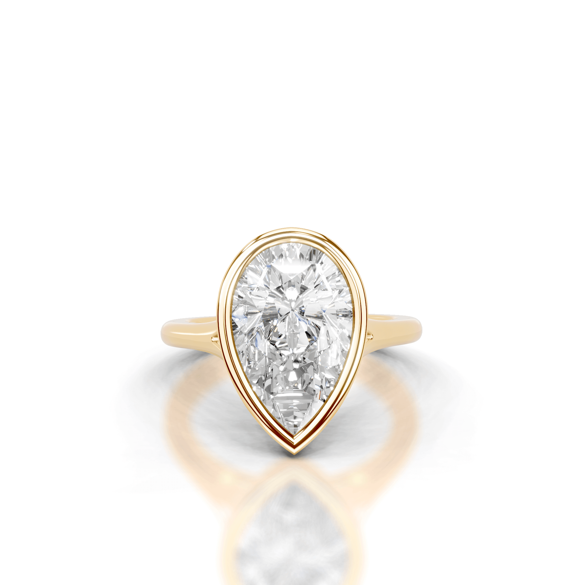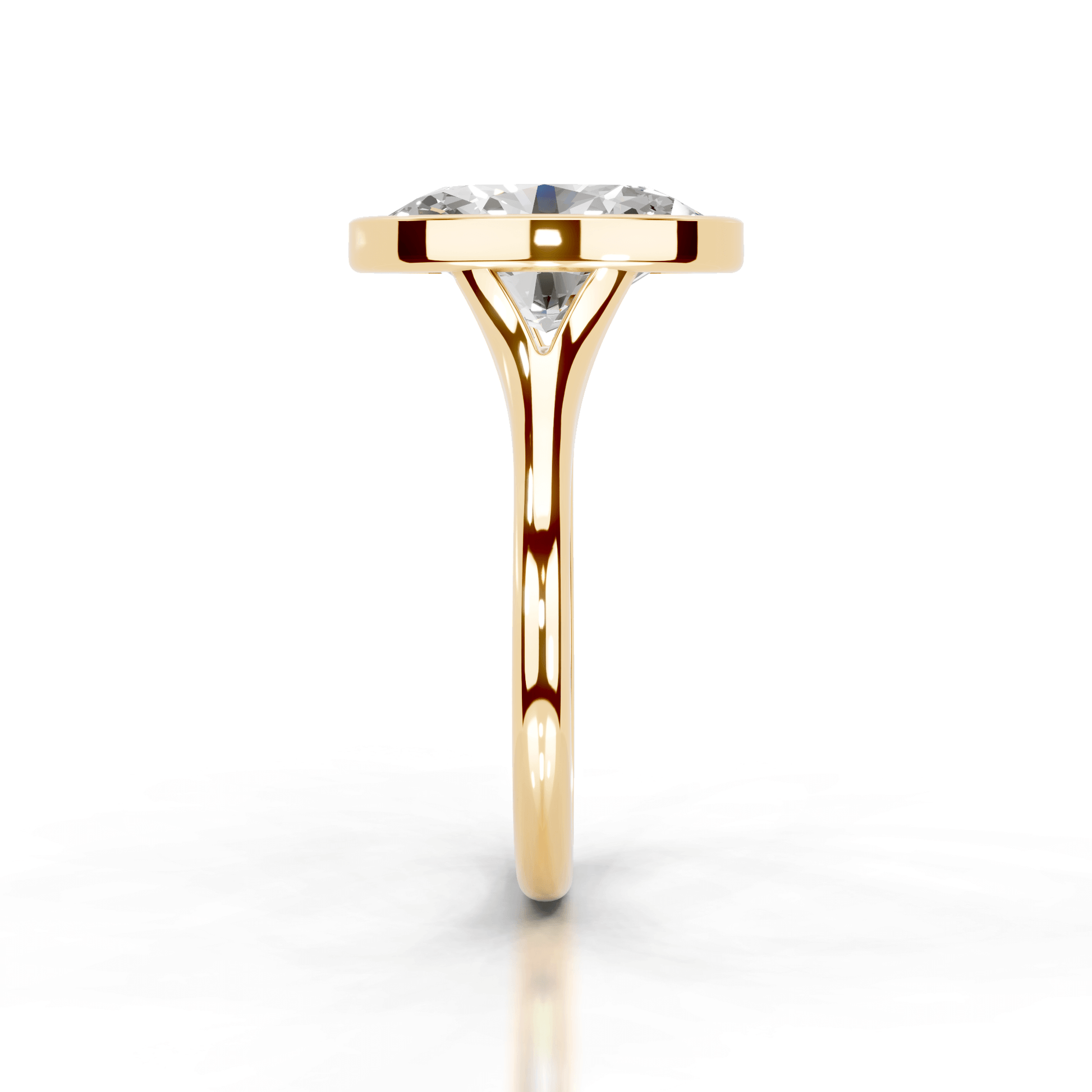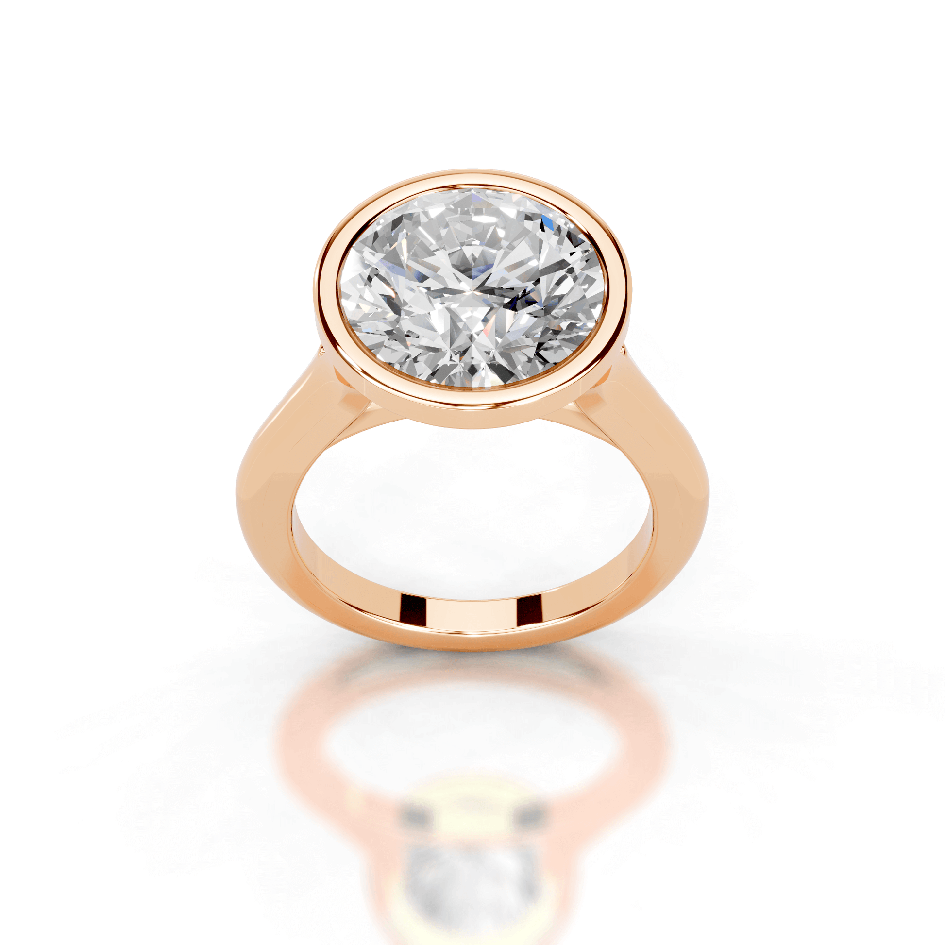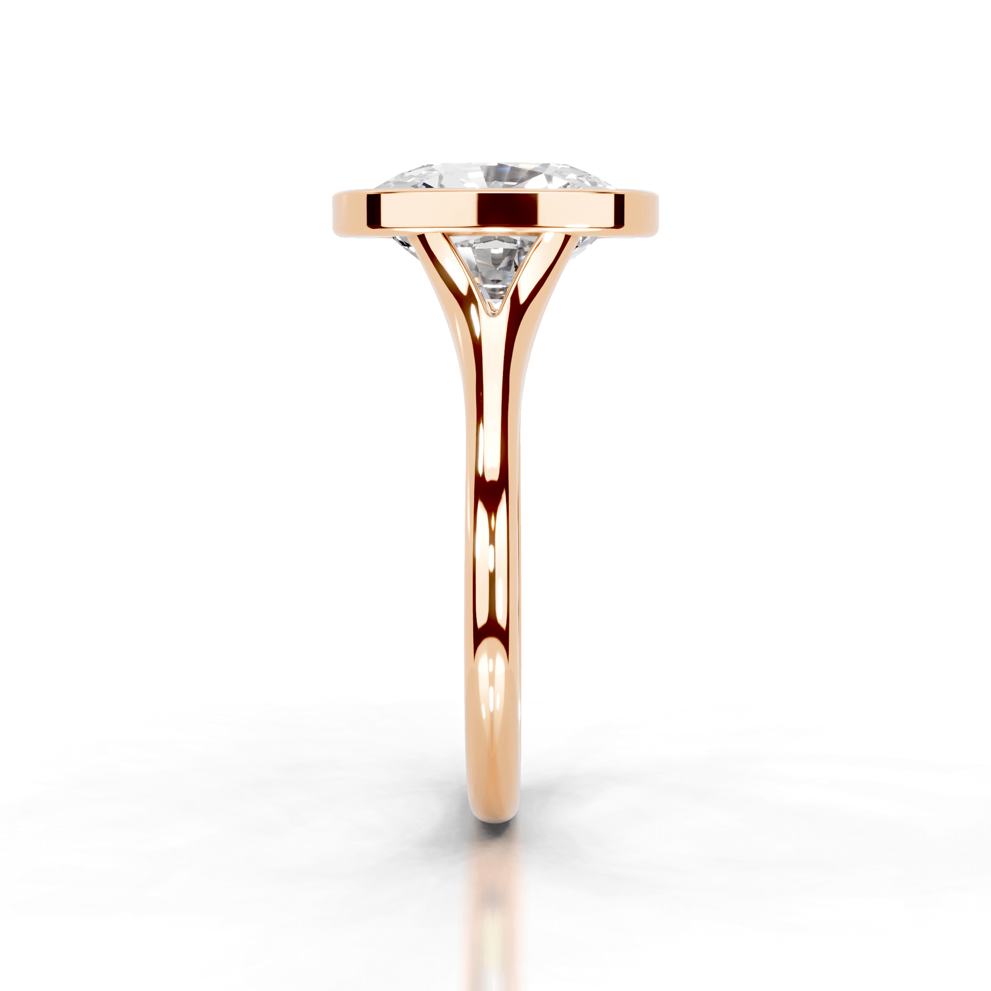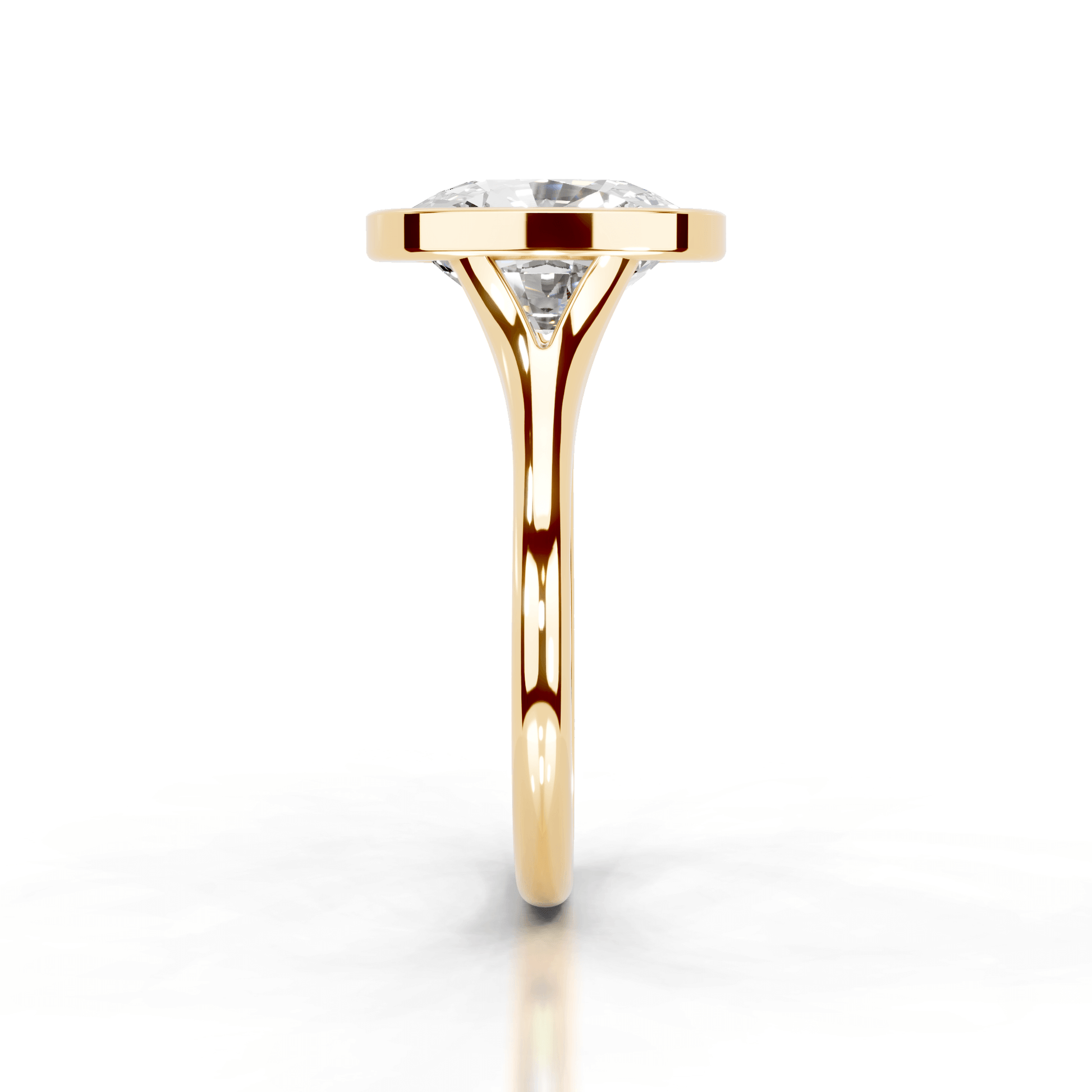 The split shank frames the diamond in an invisible full bezel setting, giving it a modern yet structured look. The 2 mm band is light and comfortable. The ring is a mid-profile setting that lets the diamond sit just above the band for a wedding band to stack flush for a clean pairing.