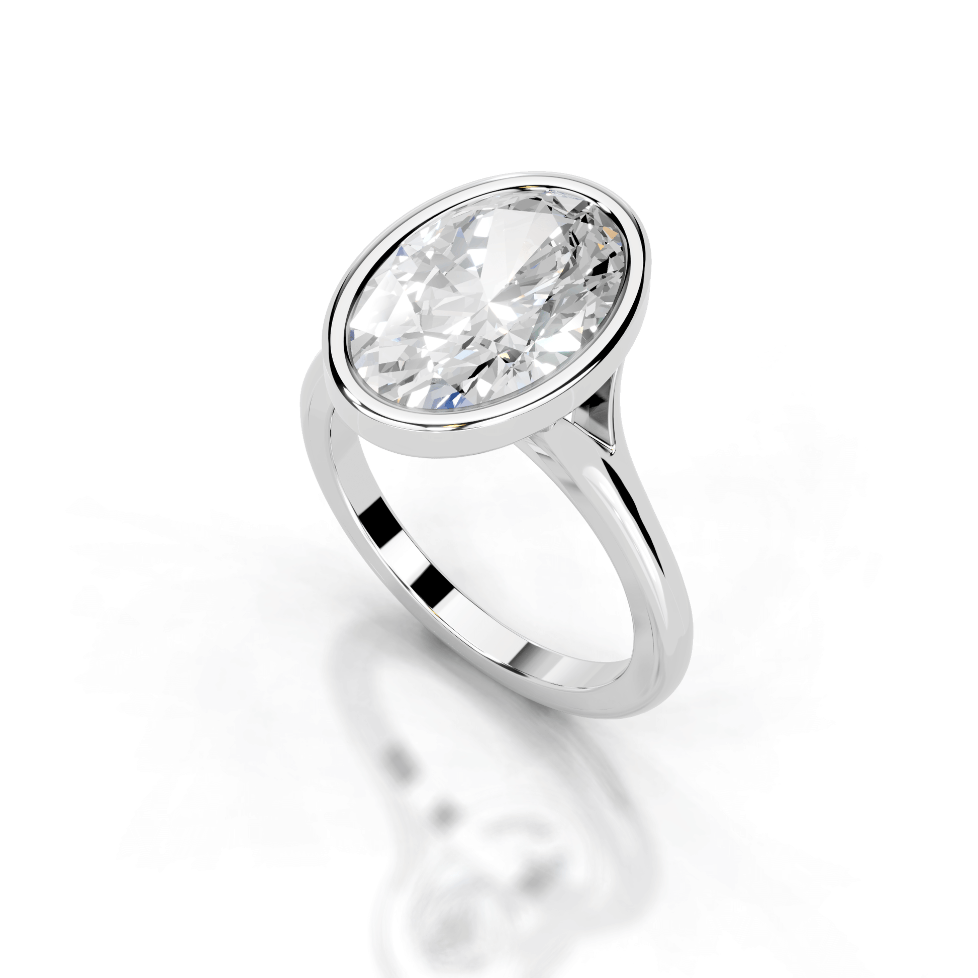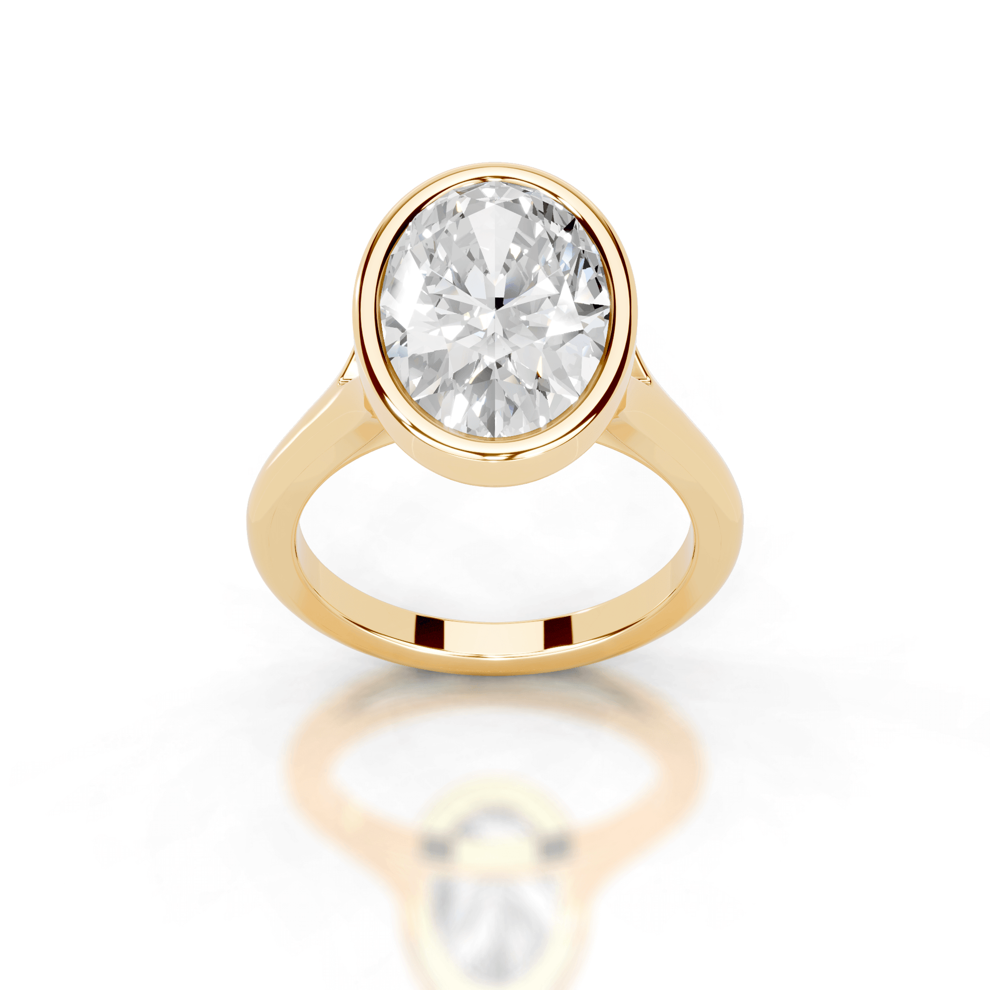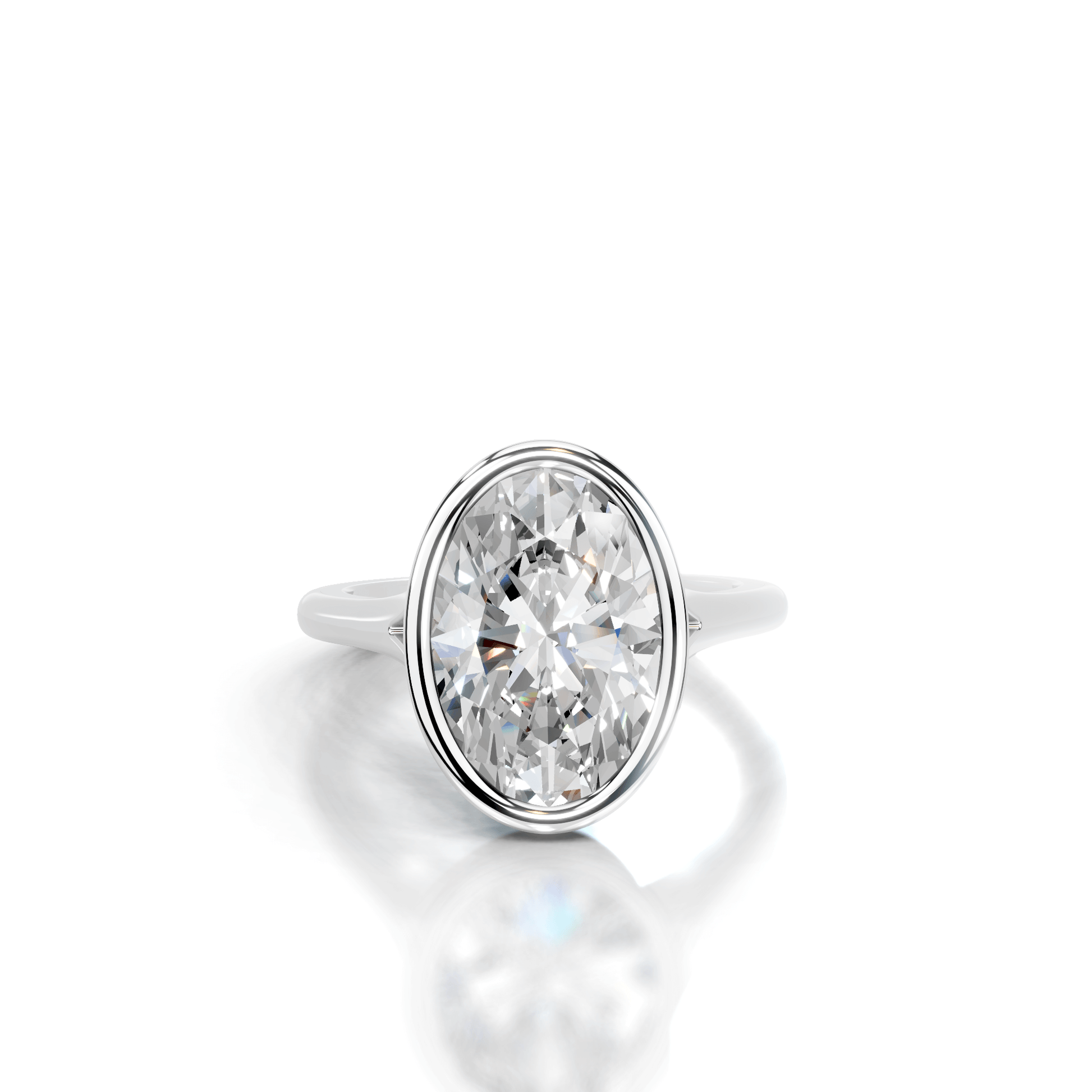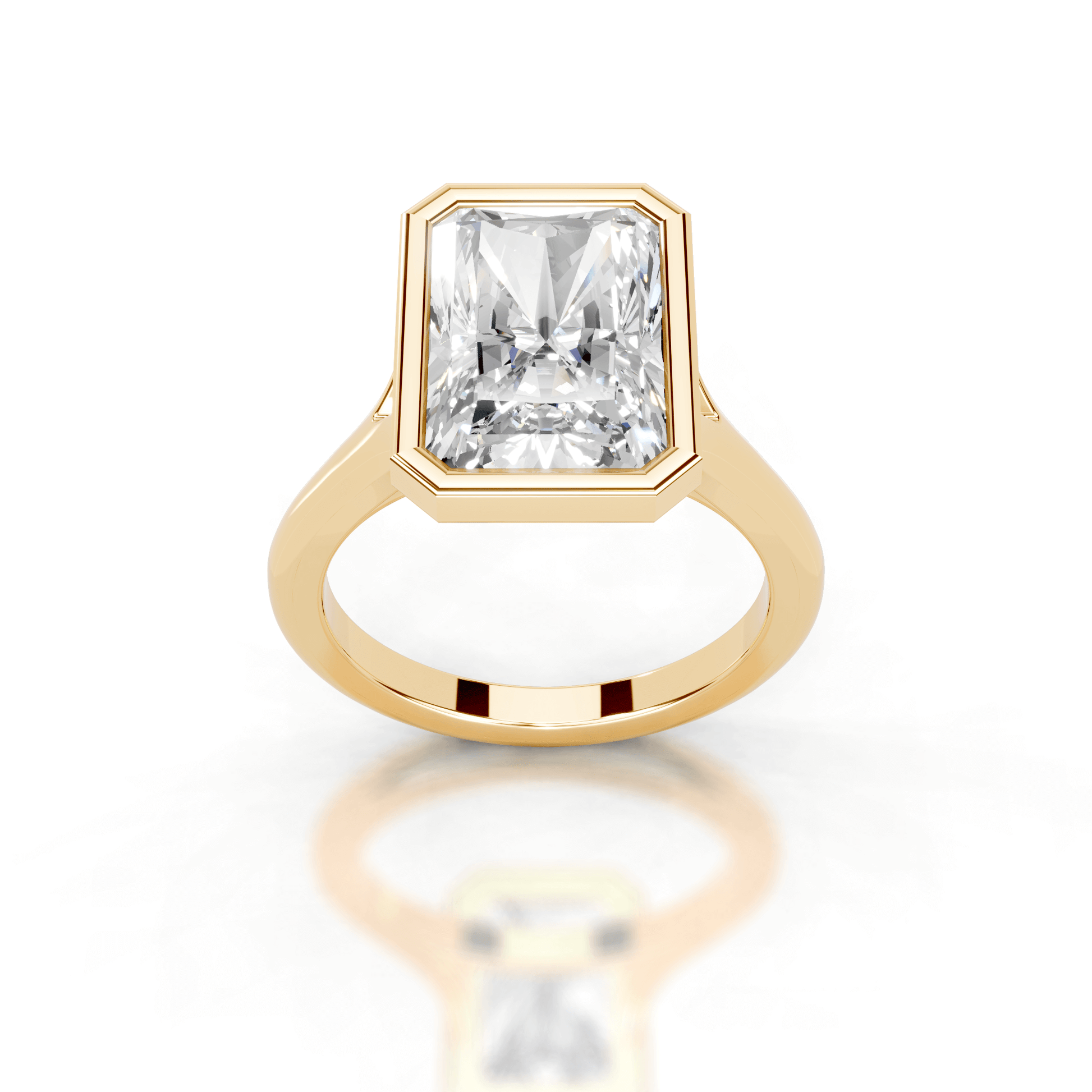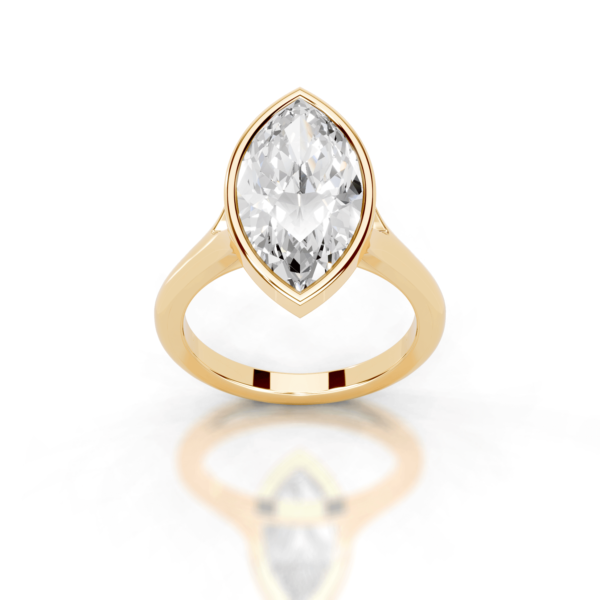 The split shank frames the diamond in an invisible full bezel setting, giving it a modern yet structured look. The 2 mm band is light and comfortable. The ring is a mid-profile setting that lets the diamond sit just above the band for a wedding band to stack flush for a clean pairing.