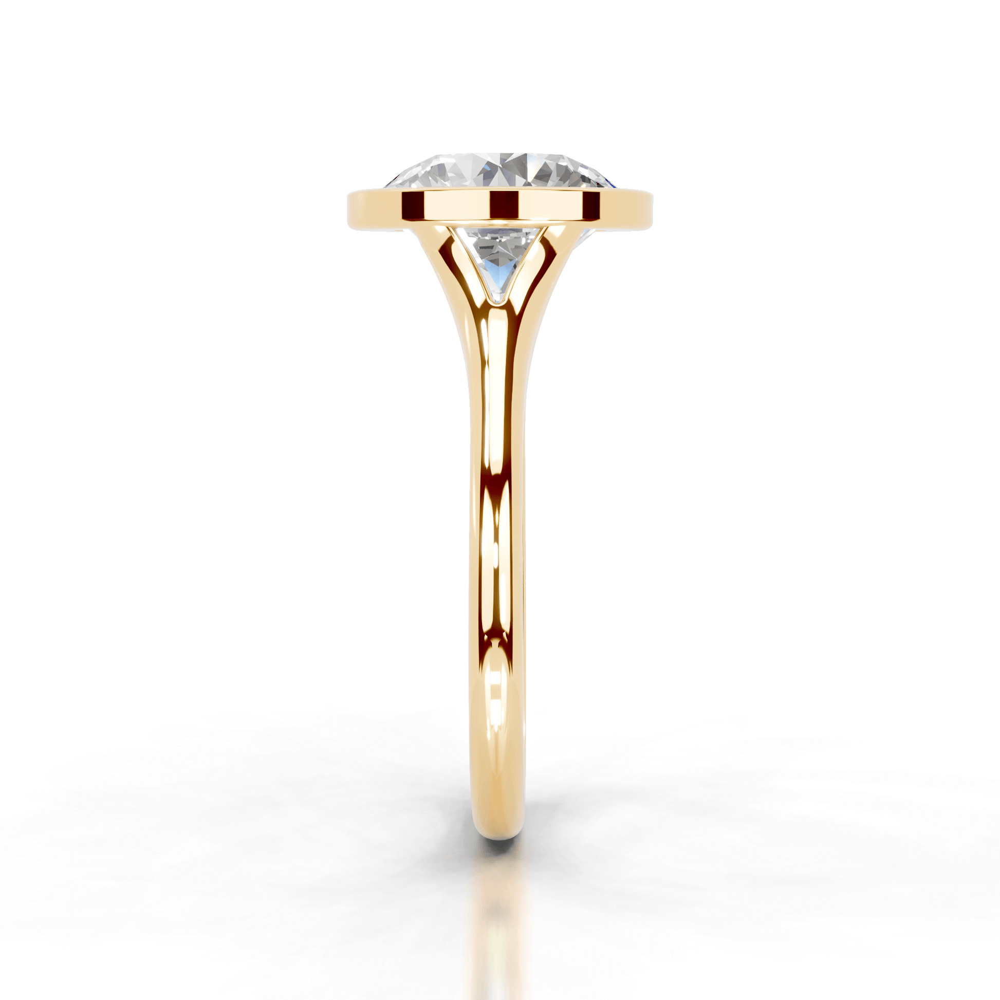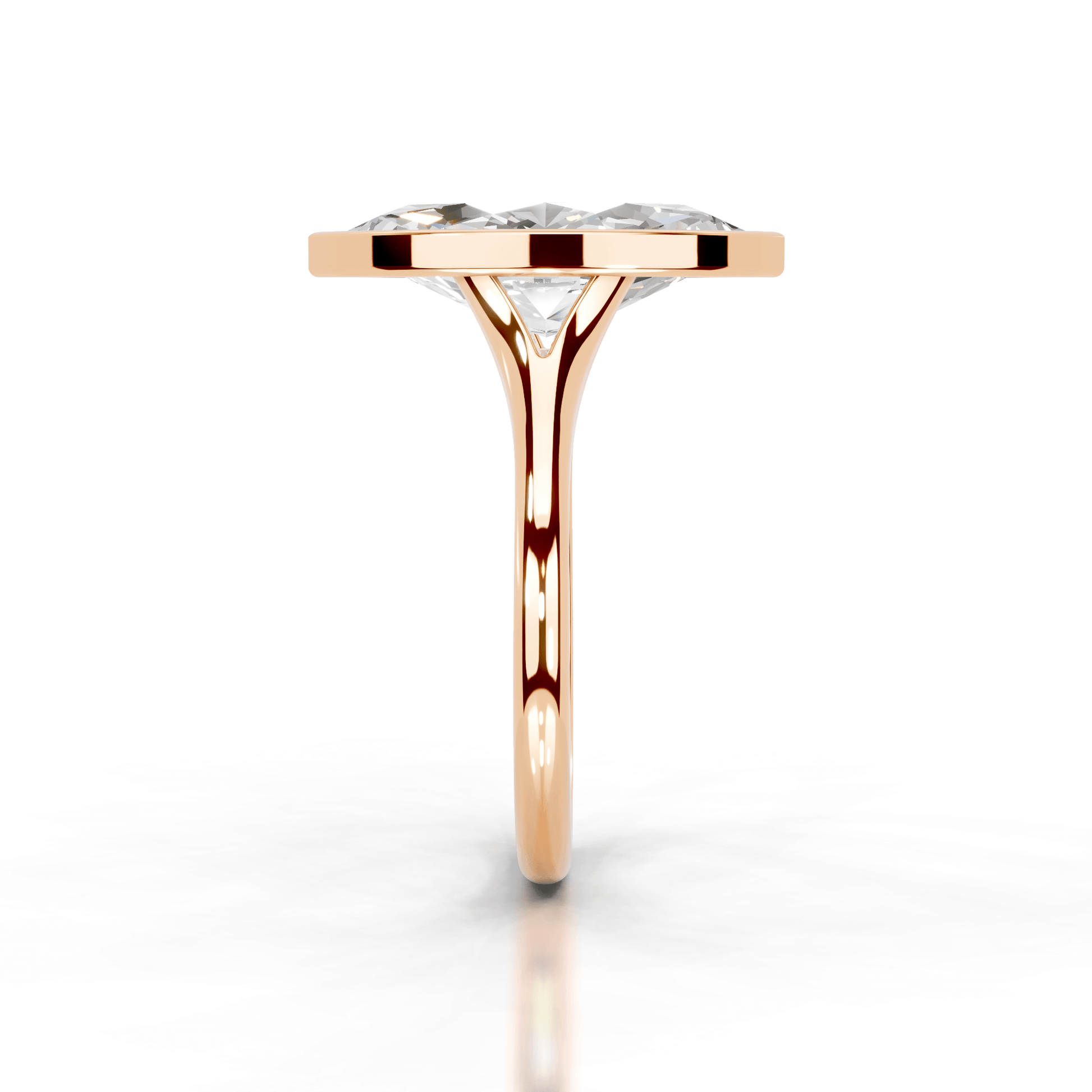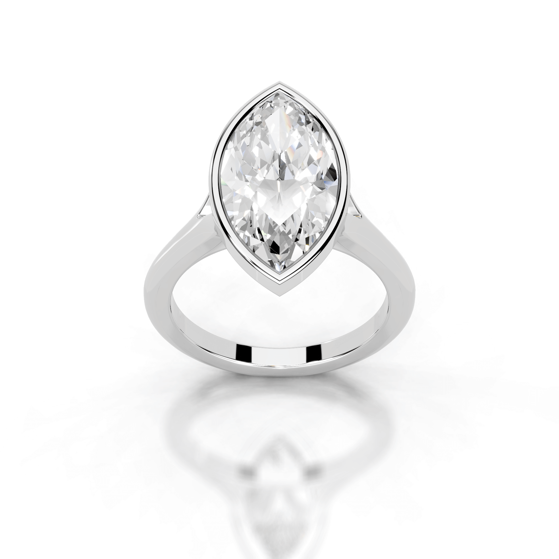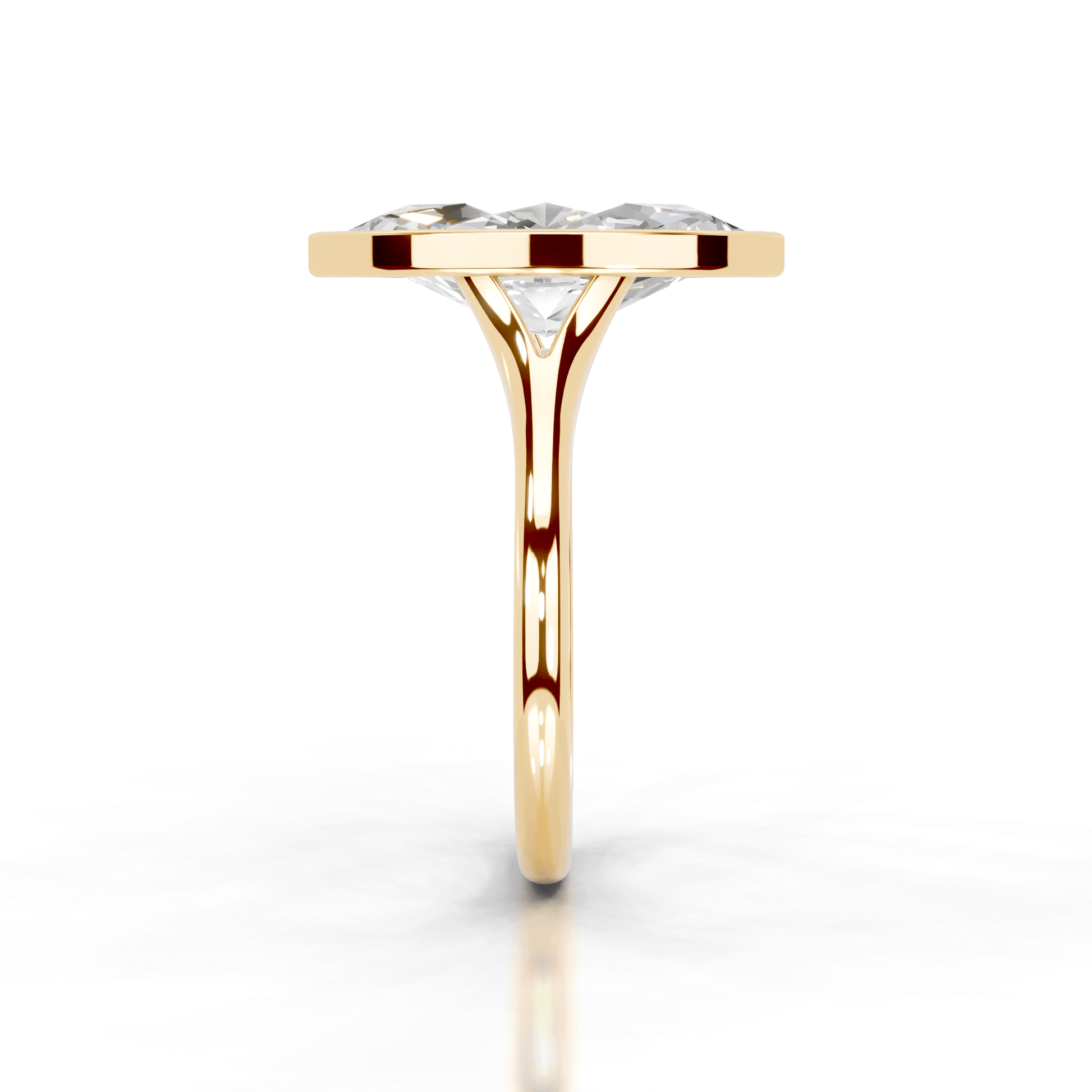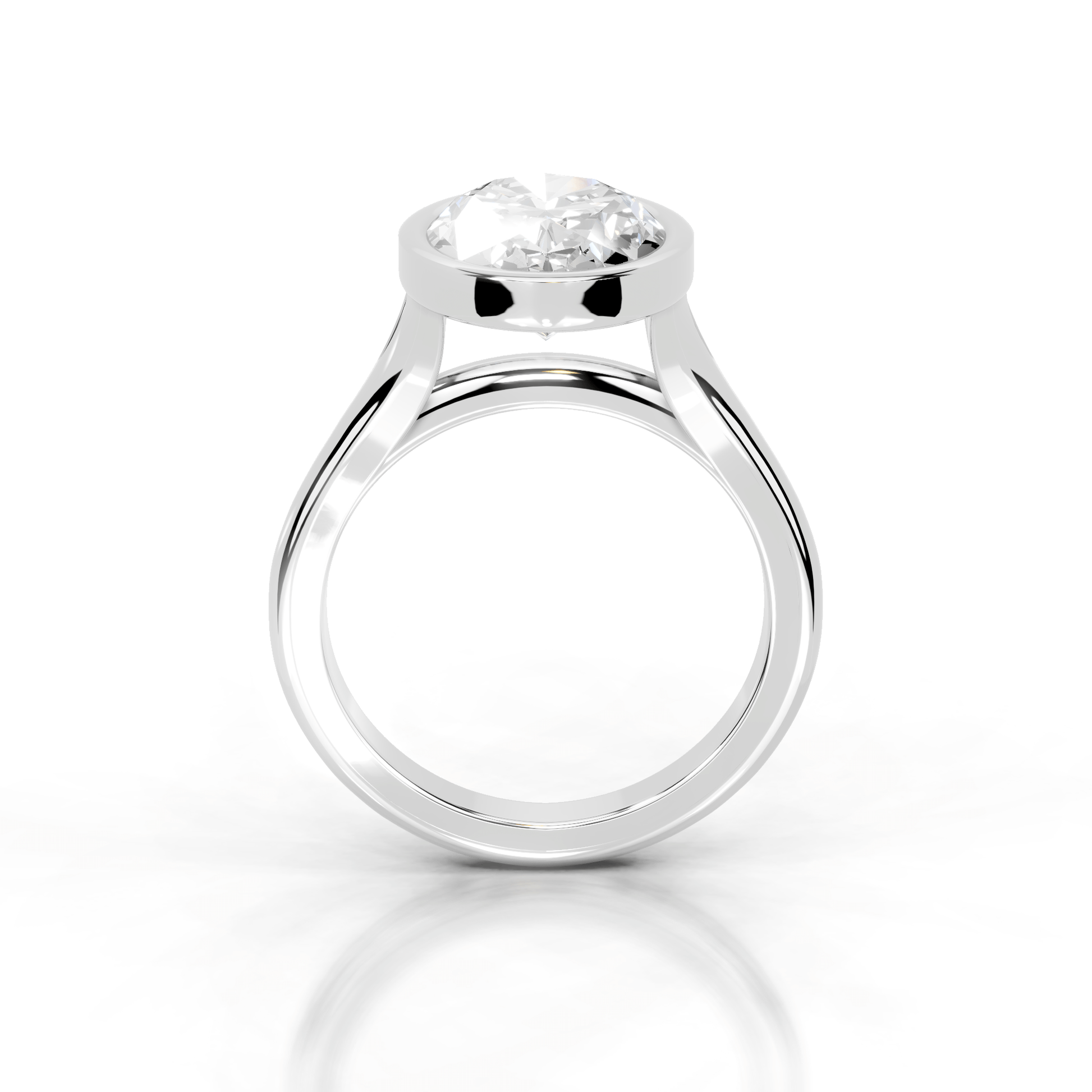 The split shank frames the diamond in an invisible full bezel setting, giving it a modern yet structured look. The 2 mm band is light and comfortable. The ring is a mid-profile setting that lets the diamond sit just above the band for a wedding band to stack flush for a clean pairing.