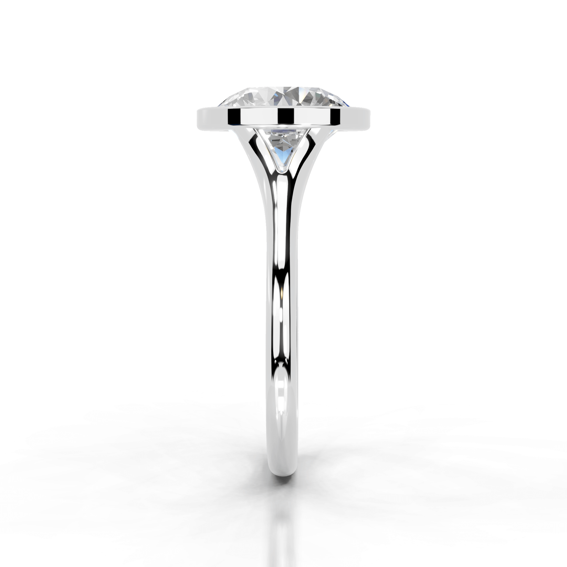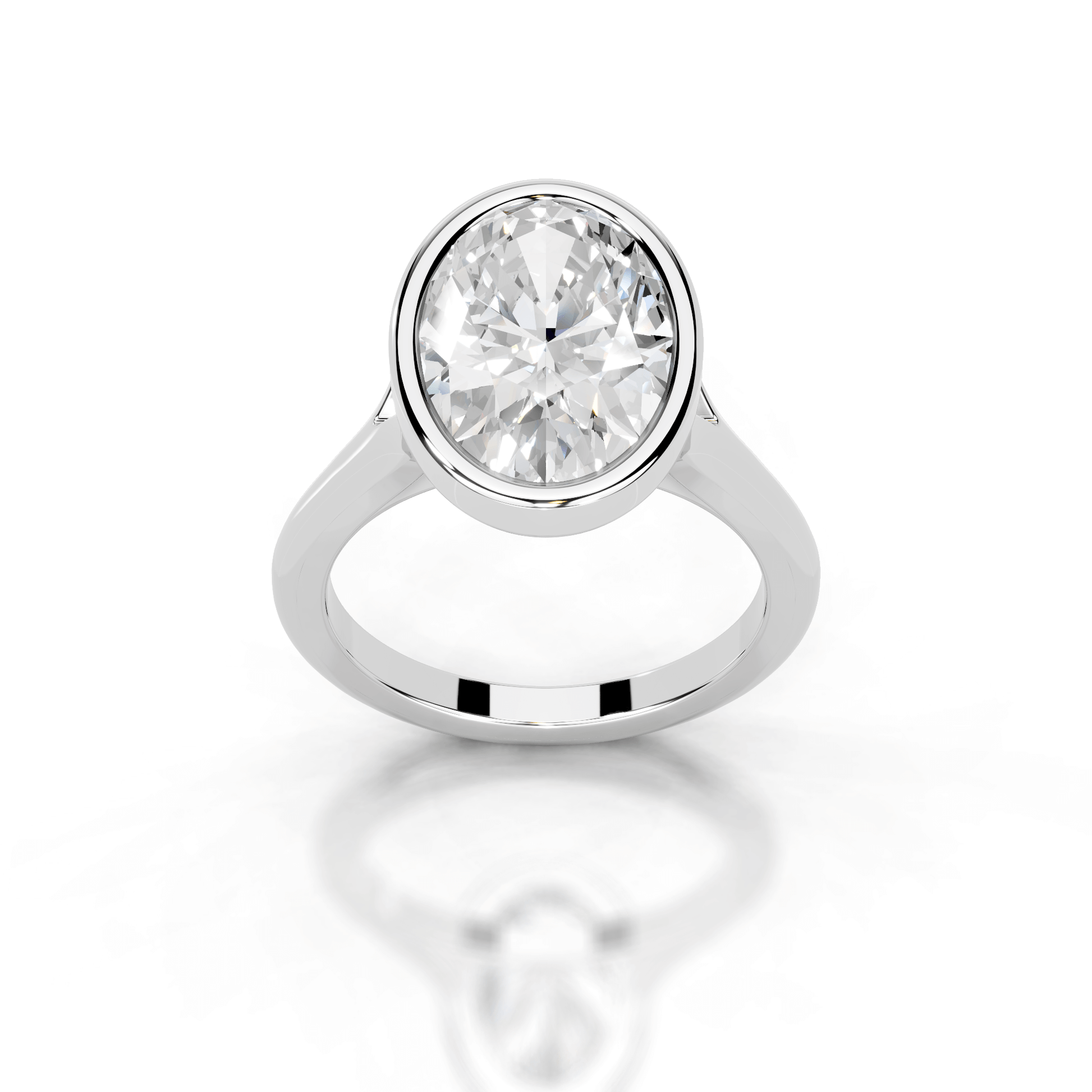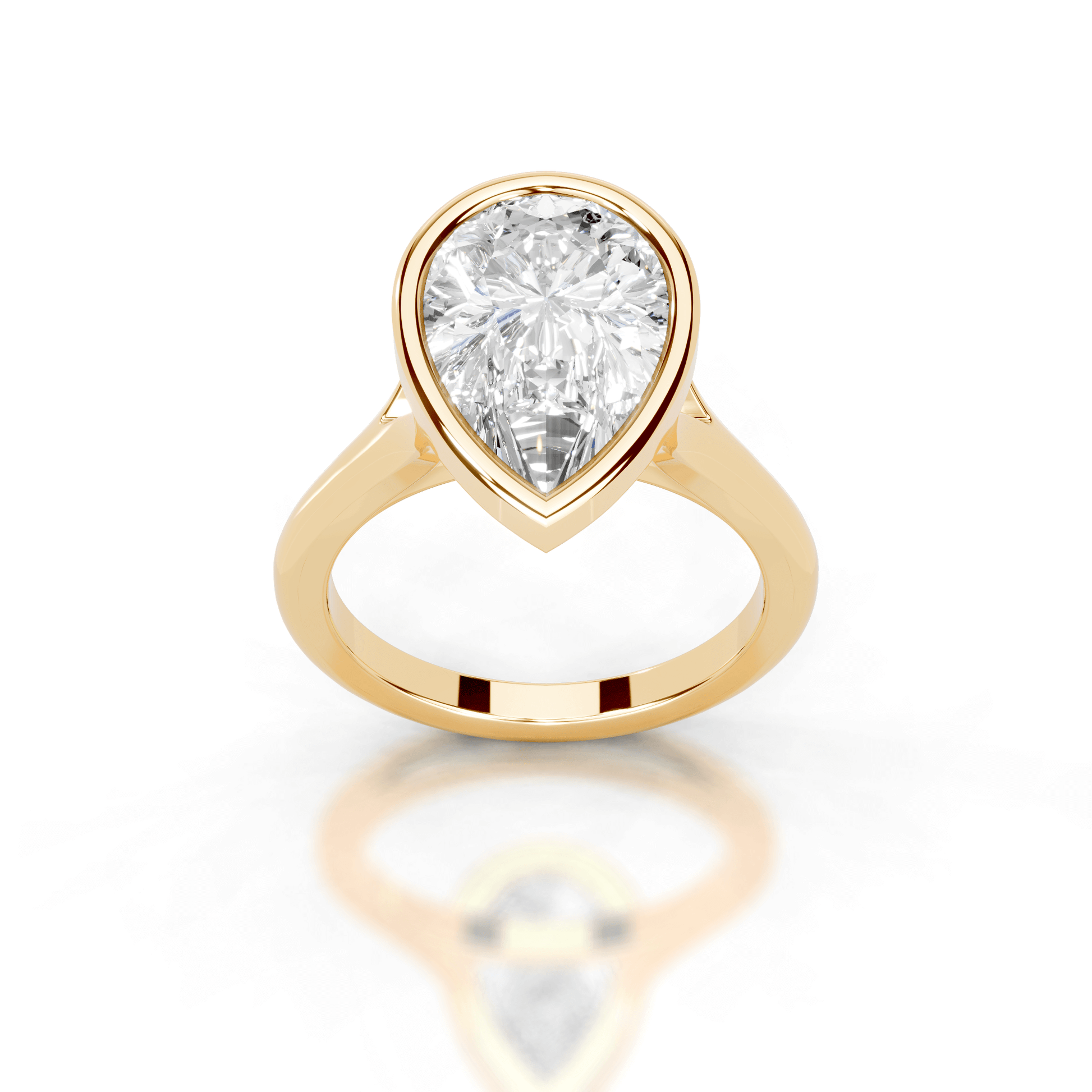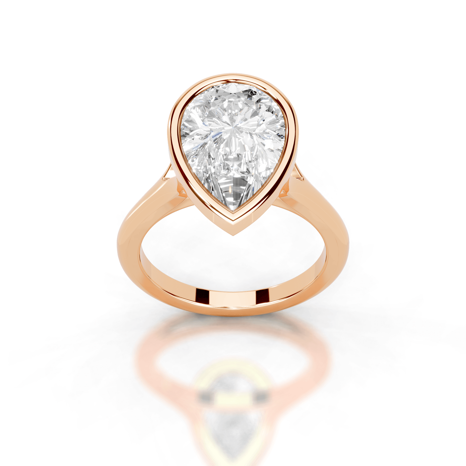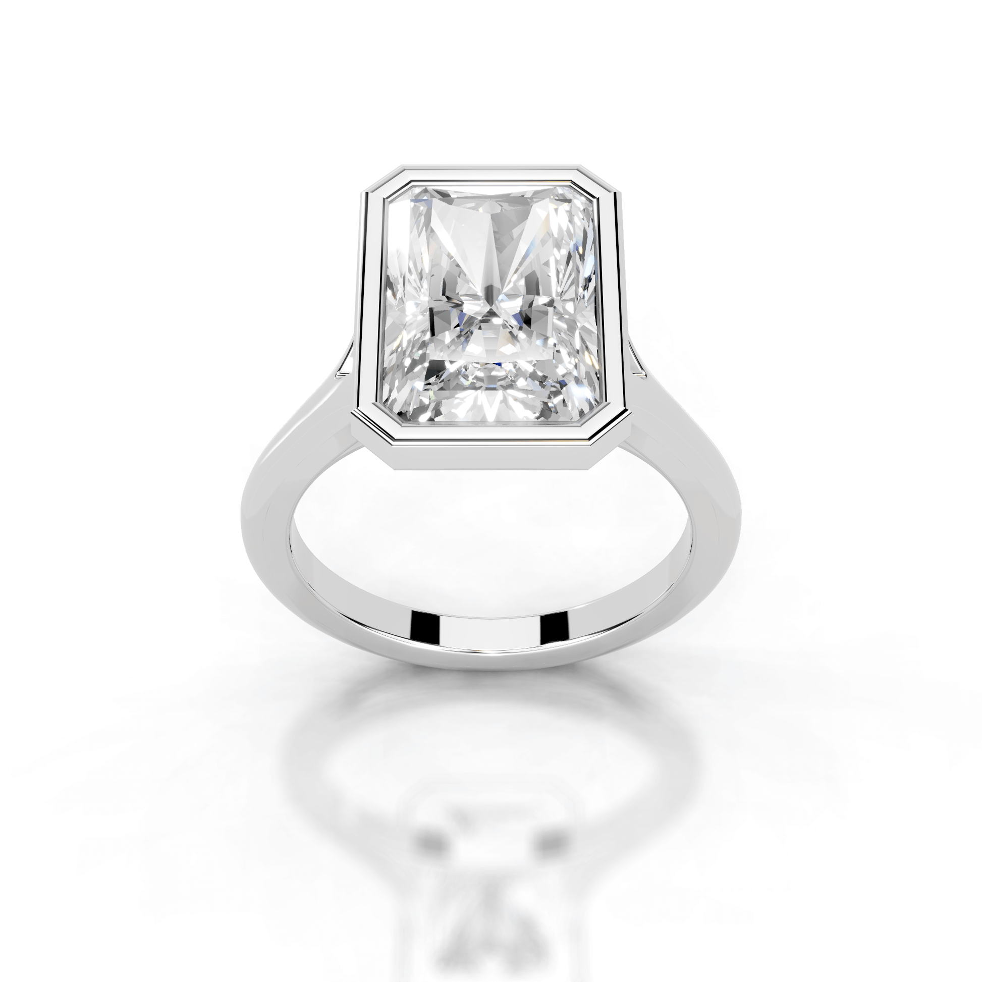 The split shank frames the diamond in an invisible full bezel setting, giving it a modern yet structured look. The 2 mm band is light and comfortable. The ring is a mid-profile setting that lets the diamond sit just above the band for a wedding band to stack flush for a clean pairing.
