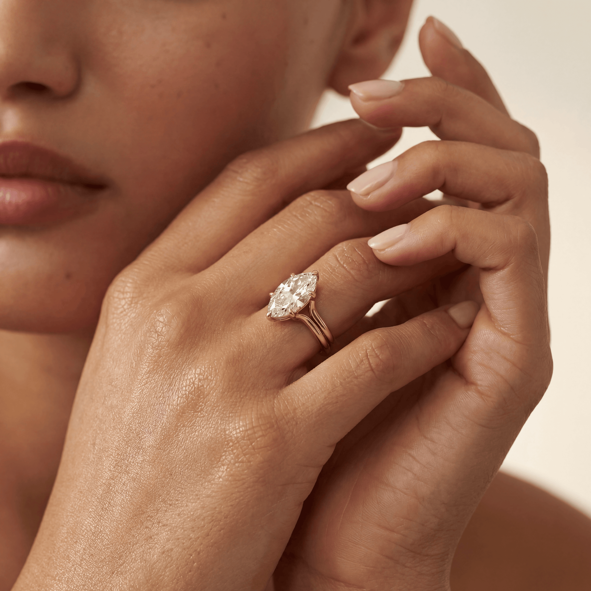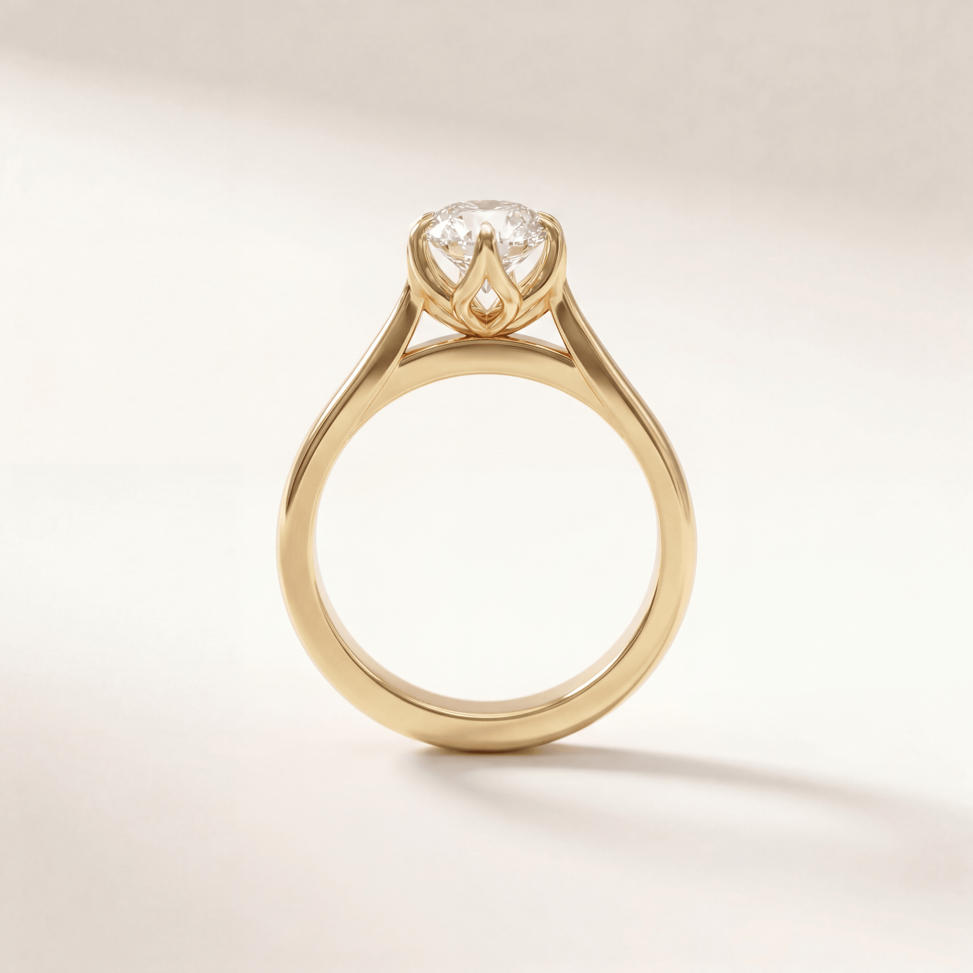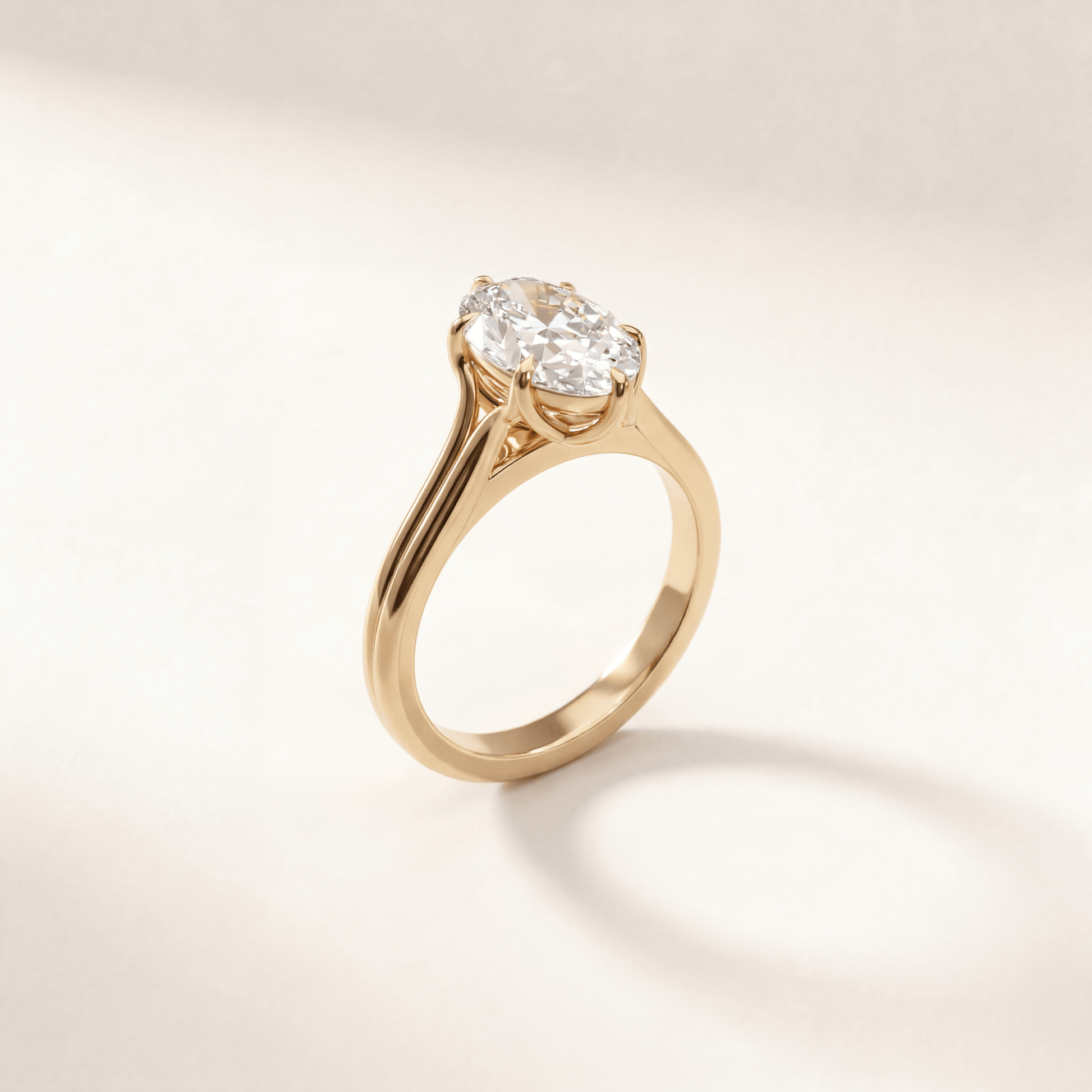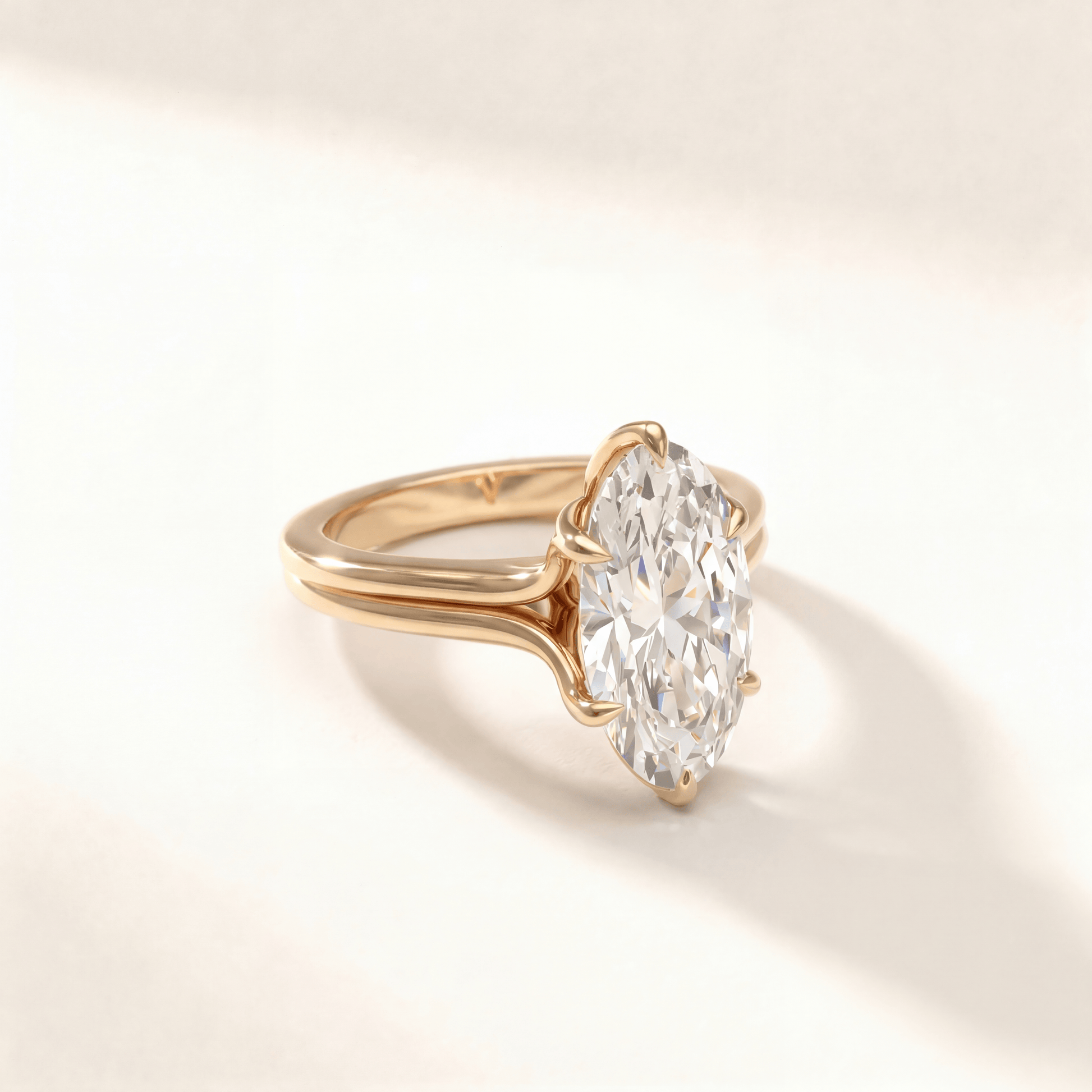 Split shank with gallery rail tulip Moval. Gallery rail highlights petals while shank curves naturally. It’s an elegant combination of structure and floral detail.