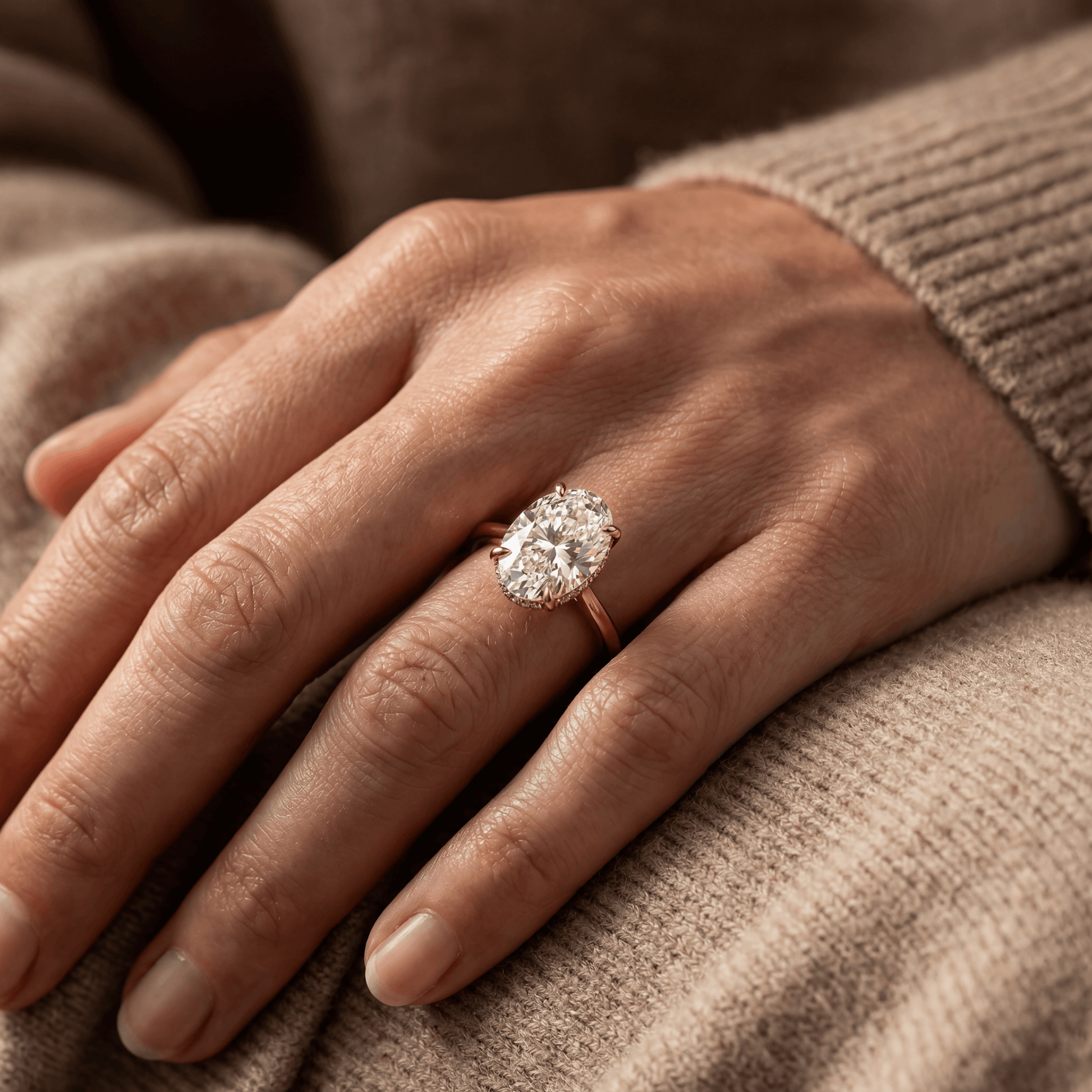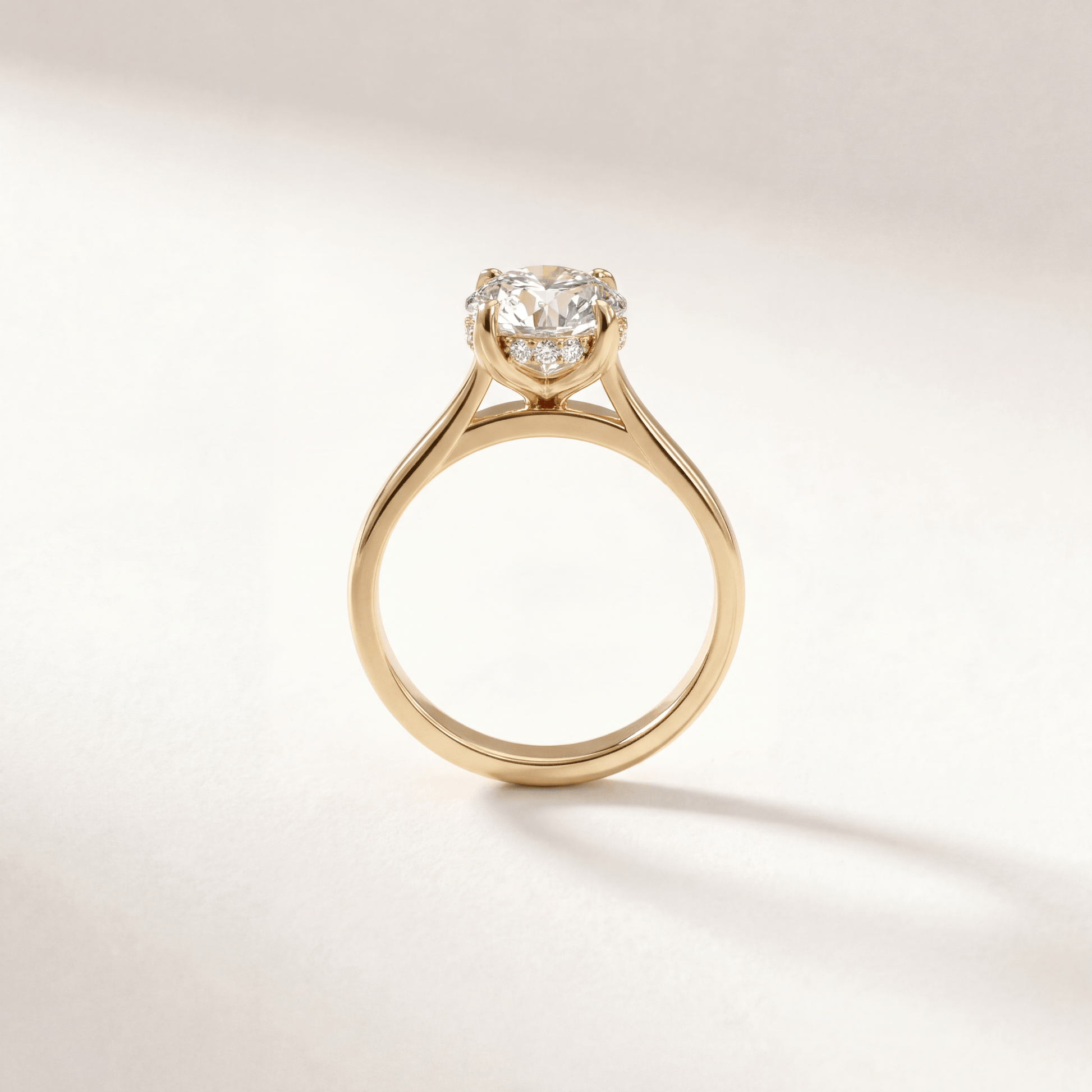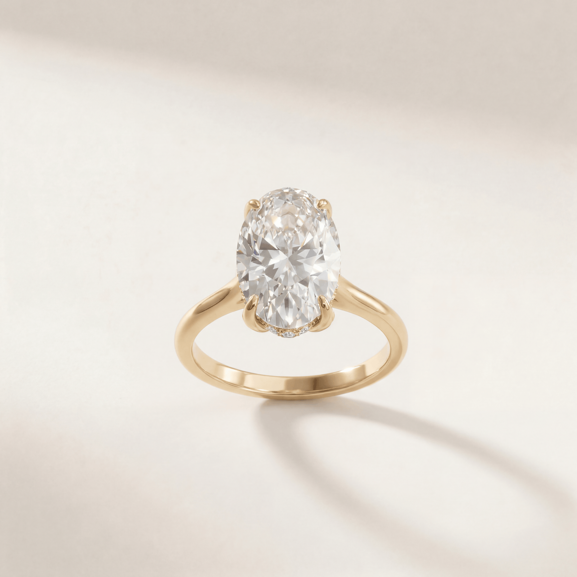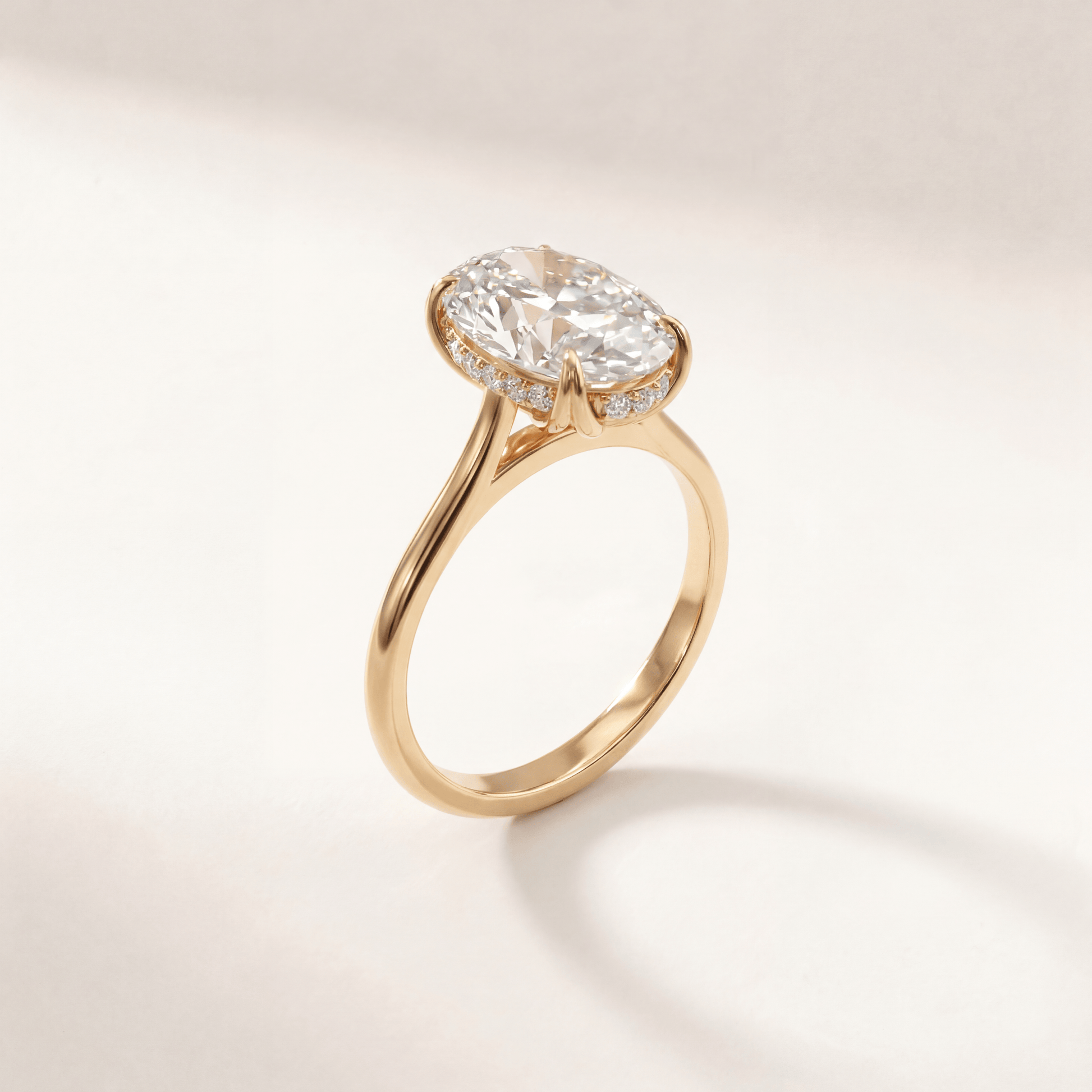 Four-petal tulip oval. Hidden halo frames the petals gently. The design feels delicate and harmonious.